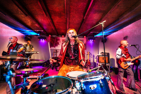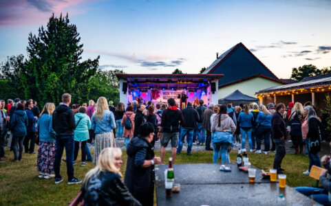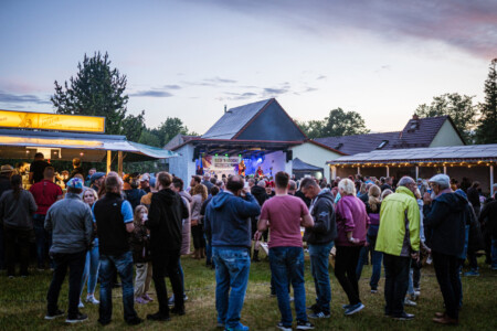 Am späten Nachmittag läutete eine junge Band aus Stahnsdorf den Abend ein. Die Gastgeber aus Rädigke – „Lore En“ eröffneten das Abendprogramm bevor liebe Gäste aus Potsdam „The Clogs“ Glam und Glitter auf dem Anger verteilten.